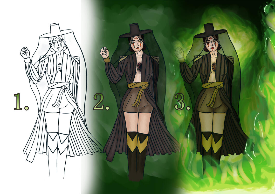 | 1.Sketch | 2.Simple Color | 3.Detailed Color |